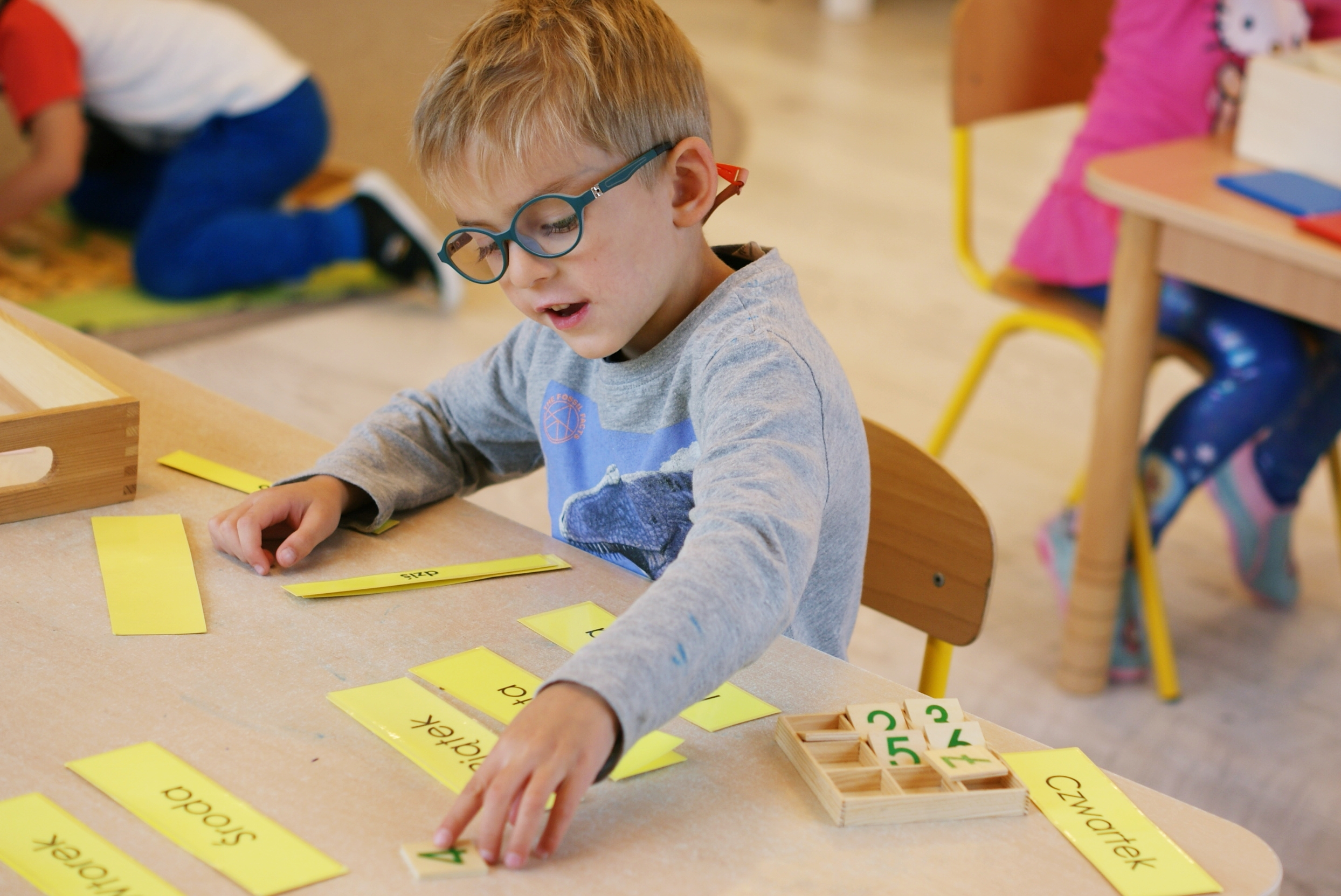 Każdego dnia dzieci uczą się samodzielności, nakładają sobie same posiłki, uczą się porządku, ale także przygotowują się do pisania i czytania. Realizujemy rozwój dzieci, poprzez zachęcanie ich do niezależności, samodyscypliny i wzajemnego szacunku, tak aby było przygotowane do odnalezienia swojej drogi w świecie.